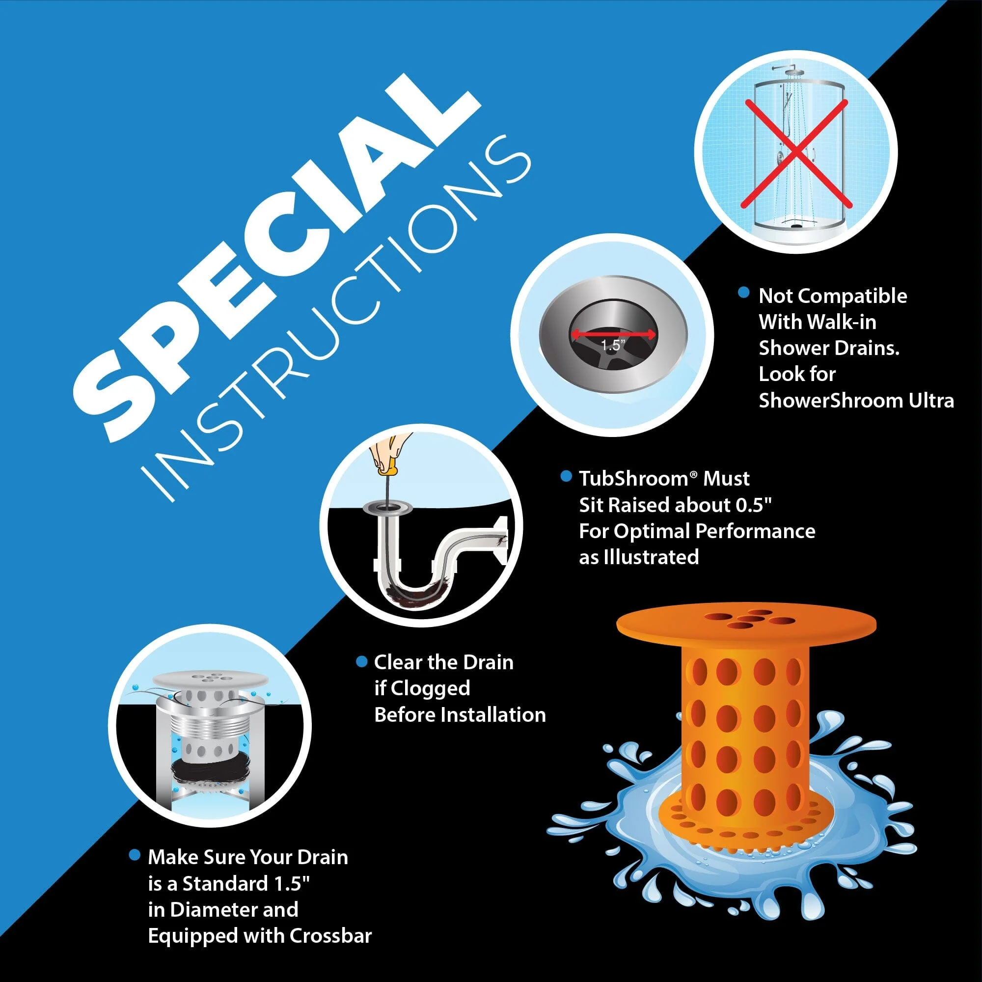 TubShroom (Orange) The Hair Catcher That Prevents Clogged Tub Drains